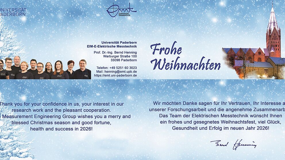 Das Team der Elektrischen Messtechnik wünscht Ihnen und Ihren Angehörigen ein frohes und gesegnetes Weihnachtsfest sowie viel Glück, Gesundheit und Erfolg im neuen Jahr 2026!