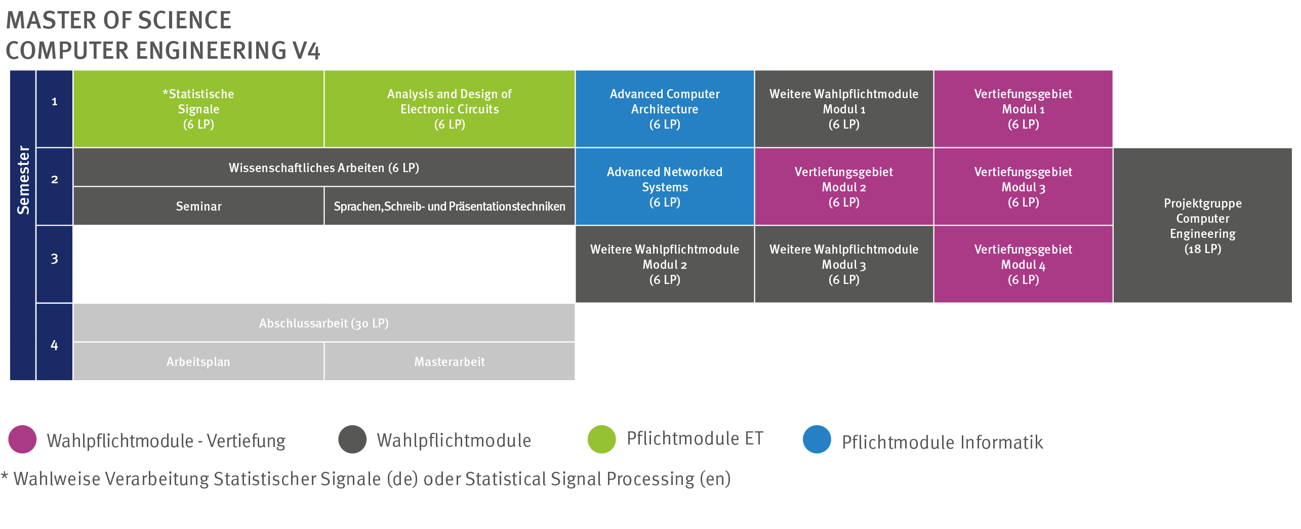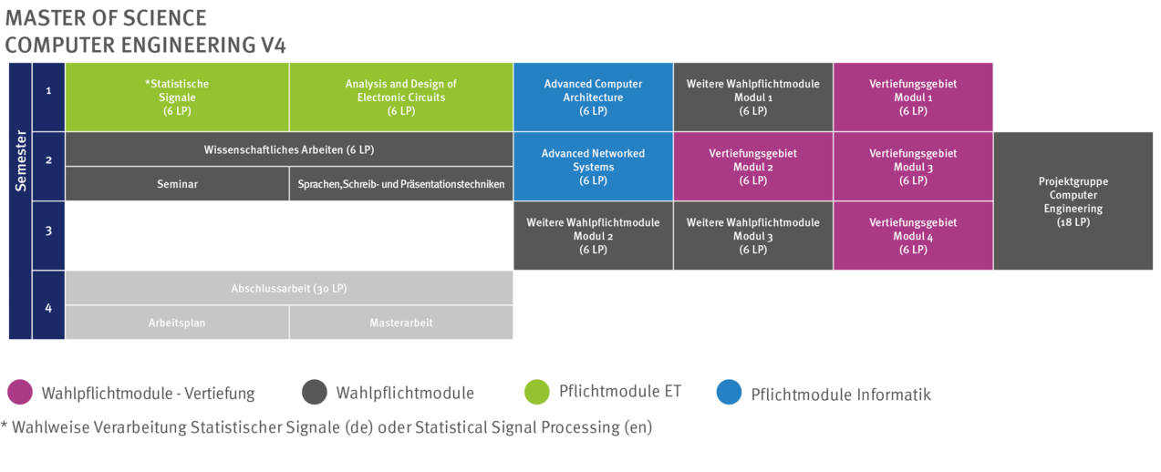 In the Master's program in Computer Engineering, you are not bound by the structure of the study plan, but it can still serve as a good guide for your studies. However, you will not only have to deal with the elective modules, but also with which specializations you would like to pursue in your studies. The subject area pages and the current module handbook can help you with this.