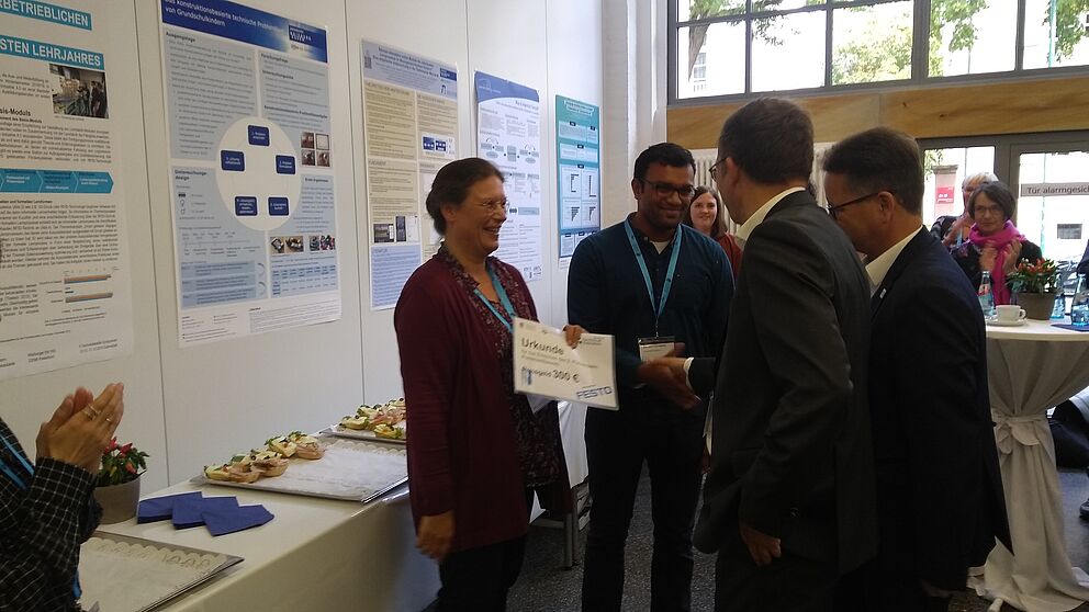Foto (Fachgebiet Technikdidaktik): v.l. Alexandra Kerkhoff (Beckhoff Automation), Herr Fabian Johann-Vorderbrüggen (Beckhoff Automation), Carsten Irmer (Carl-Miele-Berufskolleg in Gütersloh), Simon Schäfer (Masterabsolvent Lehramt am Berufskolleg mit der beruflichen Fachrichtung Elektrotechnik), Prof. Sybille Hellebrand (Universität Paderborn, Zweitgutachterin), Prof. Katrin Temmen (Universität Paderborn, Erstgutachterin)