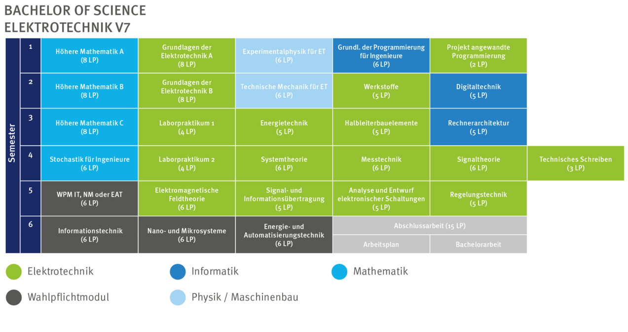 Der Studiengang Elektrotechnik wurde am 1. Oktober 2024 sowohl im Bachelor als auch im Master reakkreditiert. Demnach gibt es die neuen Prüfungsordnungsversionen EBA v7 und EMA v5, die jeweils Änderungen gegenüber ihren Vorgängerversionen mitbringen. Falls du dich für einen Wechsel in die neue Version der Prüfungsordnung interessierst, kannst du dich jederzeit bei der Studienberatung Elektrotechnik informieren.