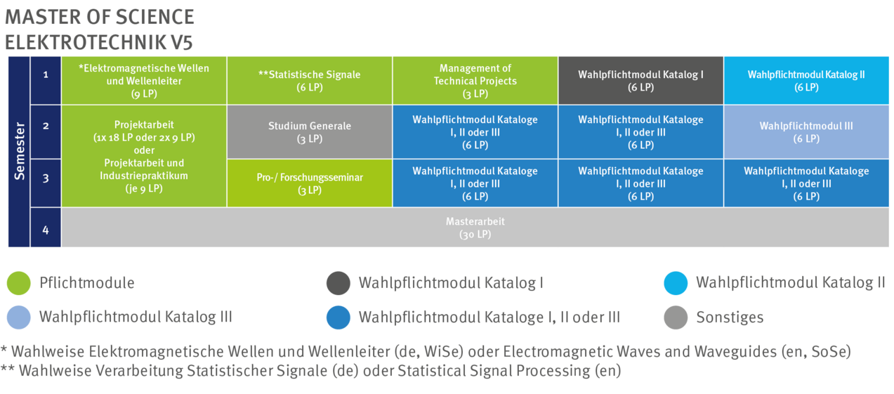 Auch im Master Elektrotechnik bist du nicht an die Struktur des Studienverlaufsplans gebunden, dieser kann dir aber dennoch als gute Orientierung im Studium dienen. Hier musst du dich allerdings nicht nur mit den Wahlpflichtmodulen auseinandersetzen, sondern auch damit, welche Vertiefungen du in deinem Studium anstreben möchtest. Dabei können dir die Seiten der Fachgebiete und das aktuelle Modulhandbuch helfen.