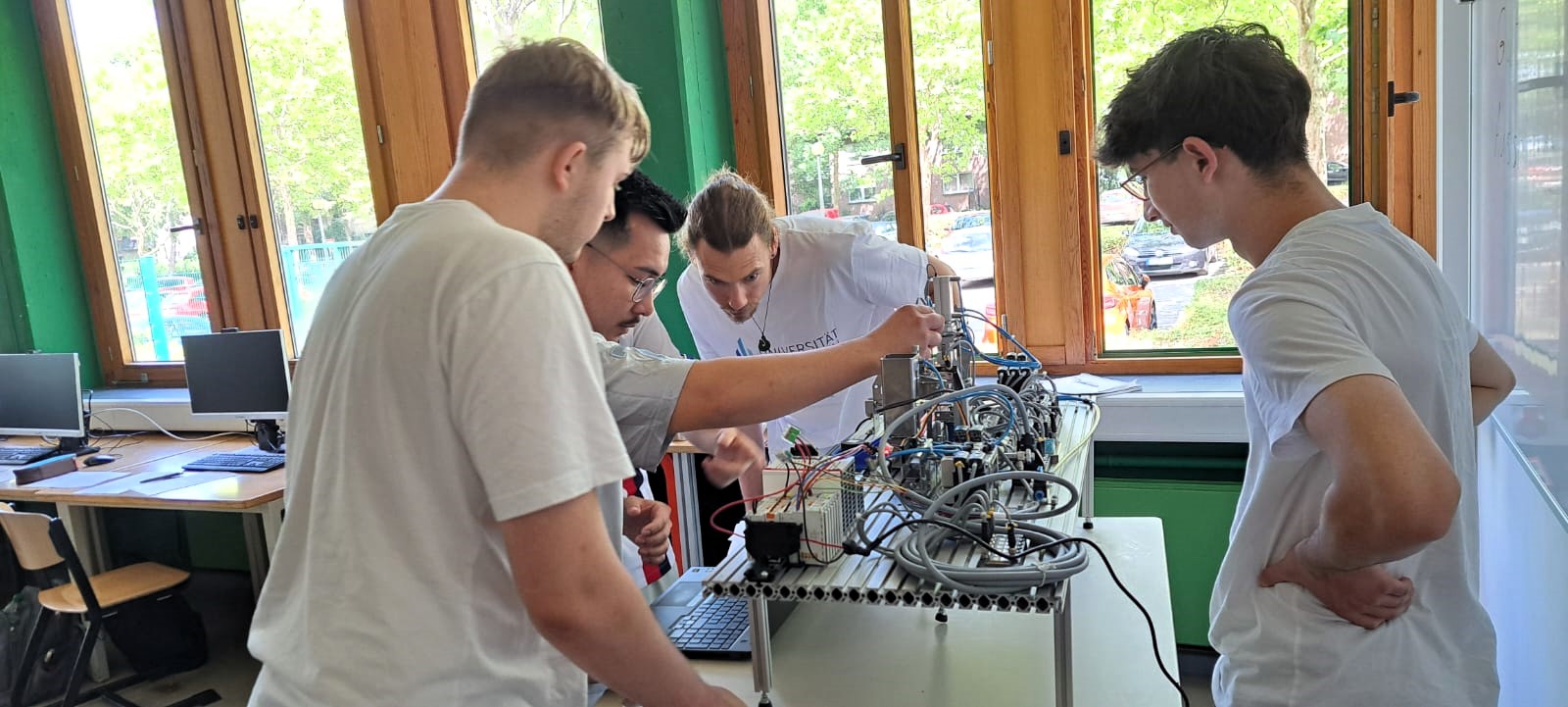 Am 3. Juli führten sechs Studierende der Technikdidaktik am Lippe-Berufskolleg in Lippstadt eine praxisorientierte Unterrichtseinheit mit angehenden Industrie- und Werkzeugmechanikern durch. Im Mittelpunkt stand eine mit Künstlicher Intelligenz (KI) ausgestattete Sortieranlage, die so trainiert werden sollte, dass sie Bauteile zuverlässig nach Form und Farbe erkennt und sortiert. Während der Durchführung übernahmen die Studierenden die Rolle der Lehrenden: Sie thematisierten die Funktionsweise der KI-Kamera und begleiteten den Trainingsprozess zur Fehlerklassifikation.